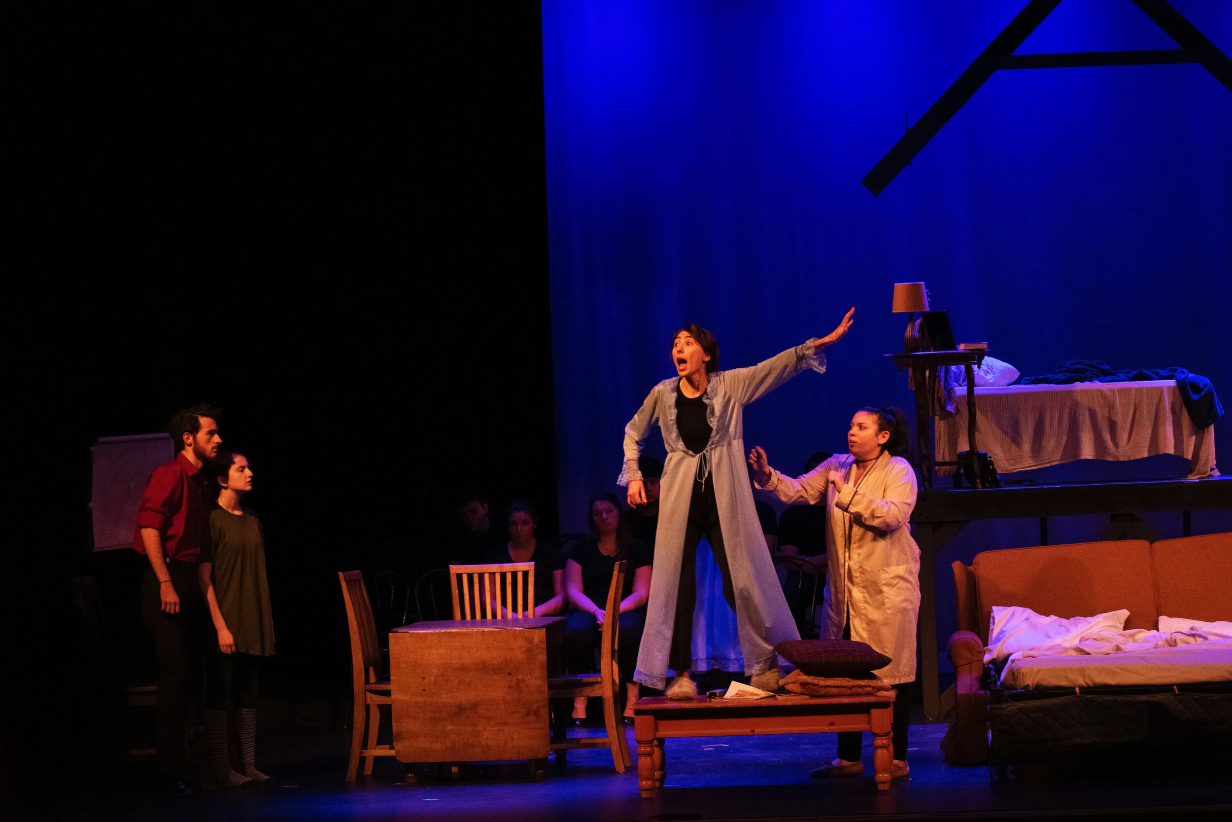 With a small cast of thirteen students, from freshmen to seniors, and a relatively minimalistic set, the vibrant and unforgettably unique characters ignited the stage. The show itself was visually stimulating due to the excellent direction and unusual arrangement of movement.