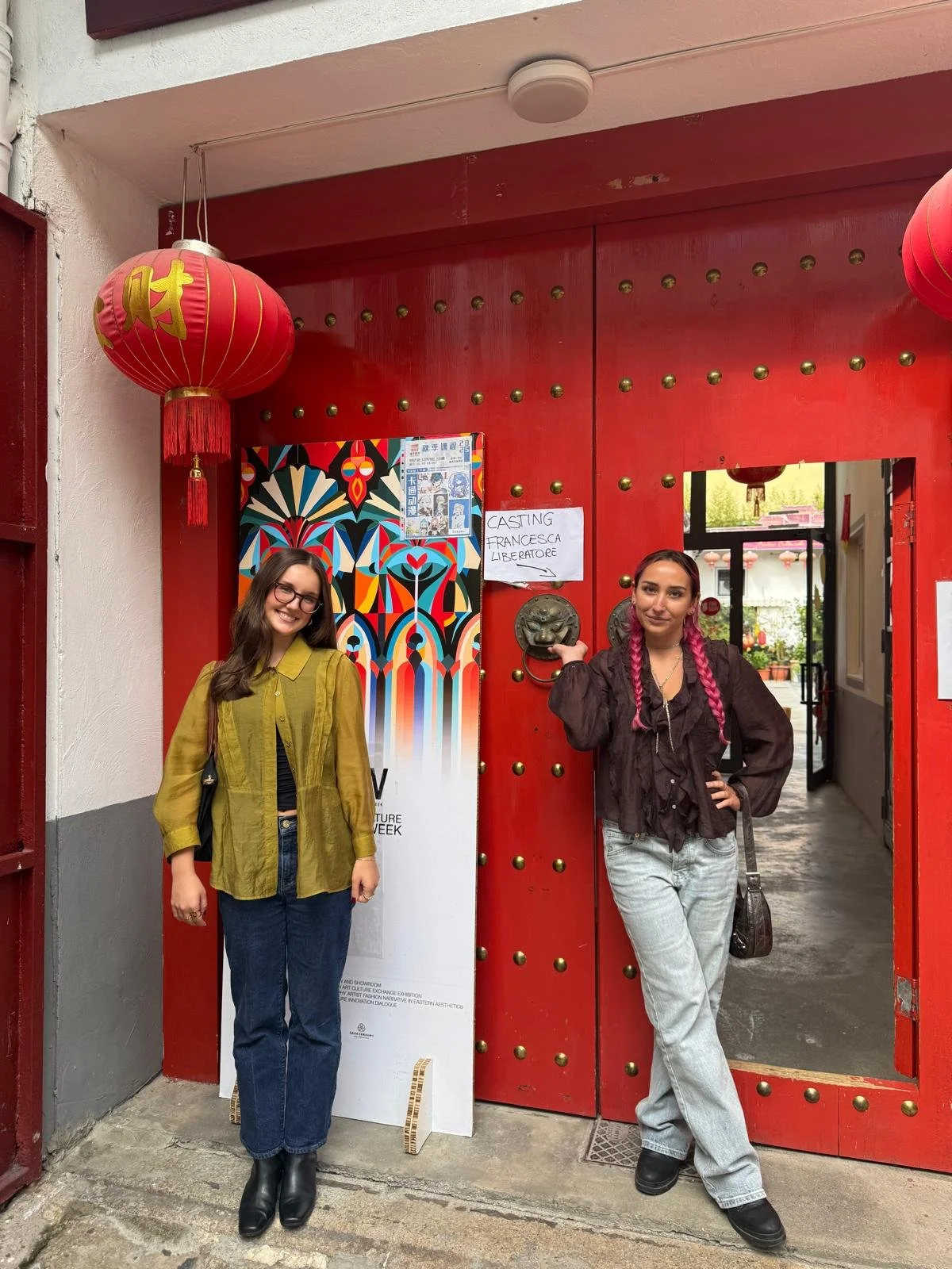 Kelsey Kuefner '26 and Carlie Taylor '26 in front of the Francesca Liberatore Model Casting building. Photo by Kelsey Kuefner '26 and Carlie Taylor '26