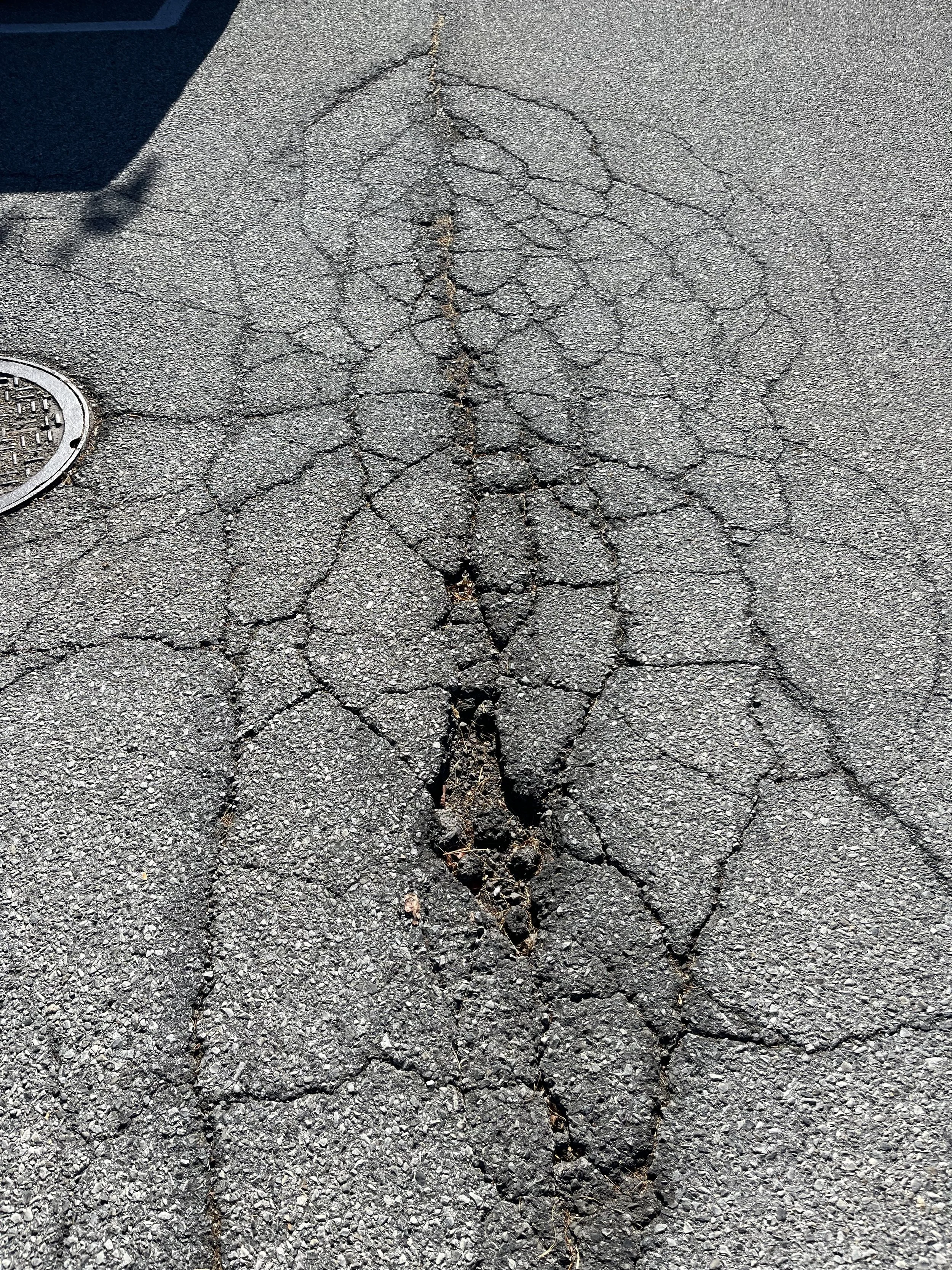 The DCTC assessment of roads looked for things like potholes and cracking. Photo by Ethan Roy '26