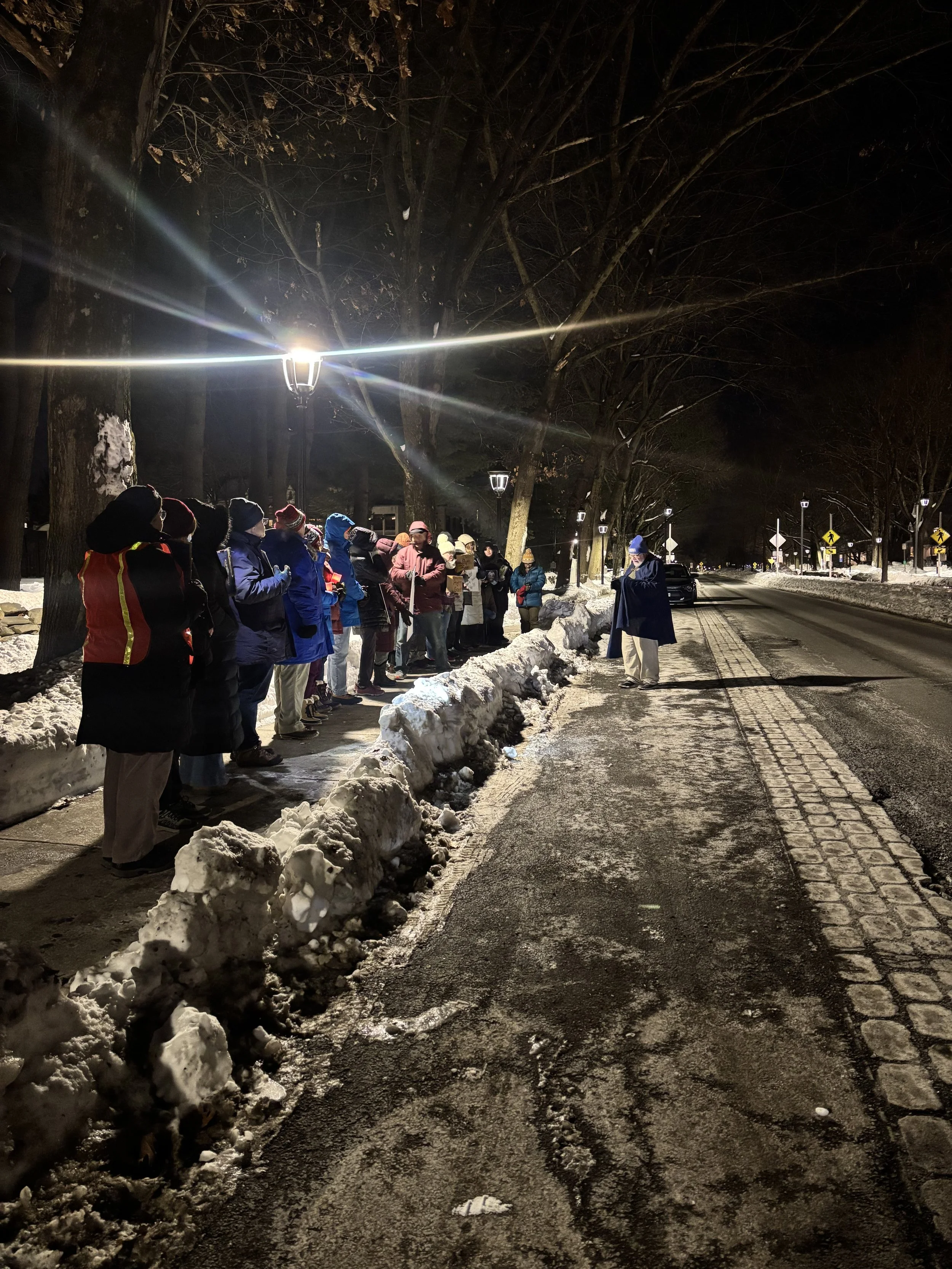 Despite the freezing conditions and late hour, protesters stood by one another holding signs adorned with simple messages and faux candles to dimly light the area.