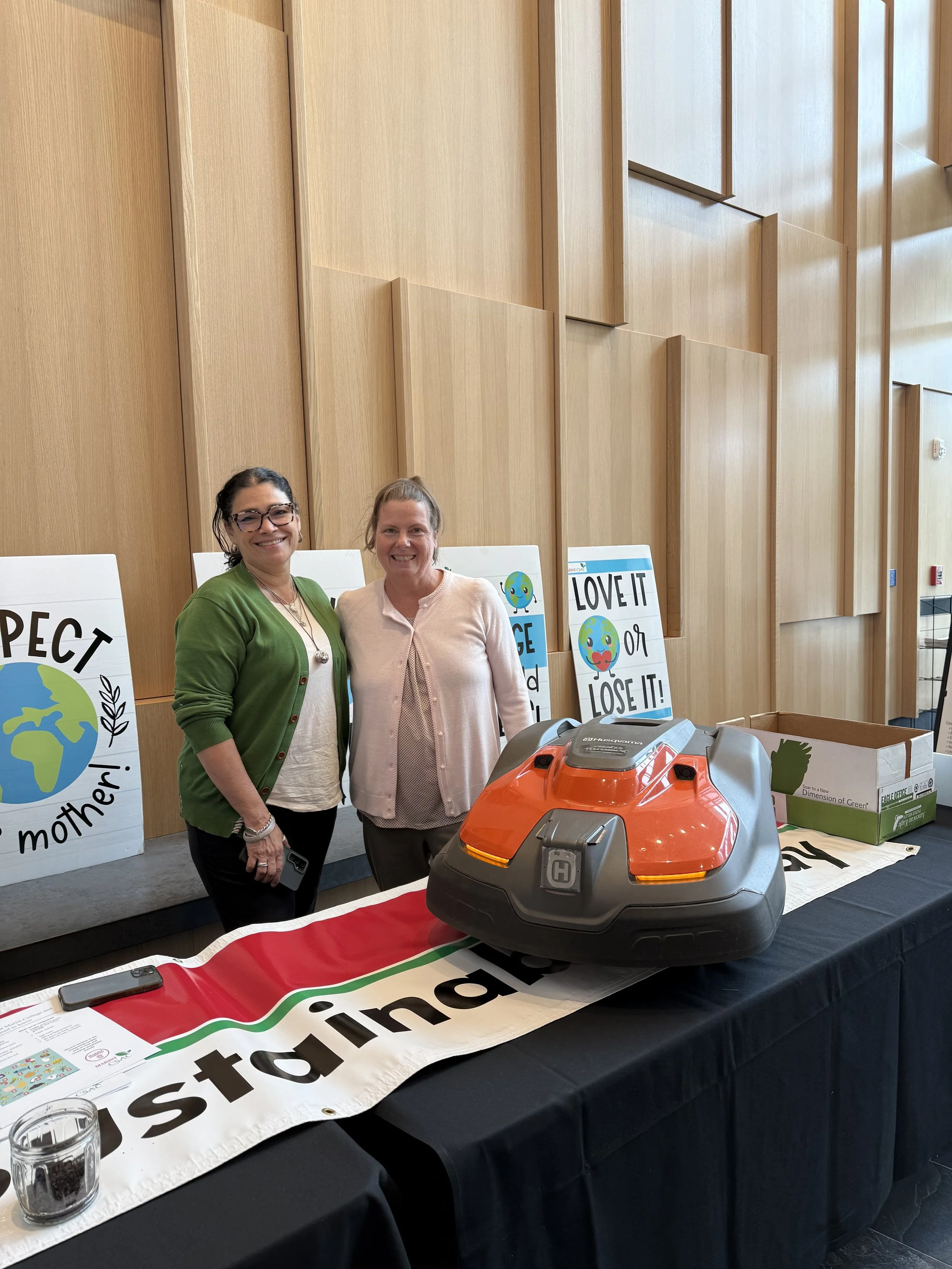 During their most recent visit, the group celebrated several of the sustainability efforts already achieved on the campus. They celebrated notable efforts like the electric lawn-cutting robots, which operate on rechargeable batteries instead of gas-powered equipment. This technology advancement reduces greenhouse gas emissions and noise while operating, making the campus quieter and cleaner.