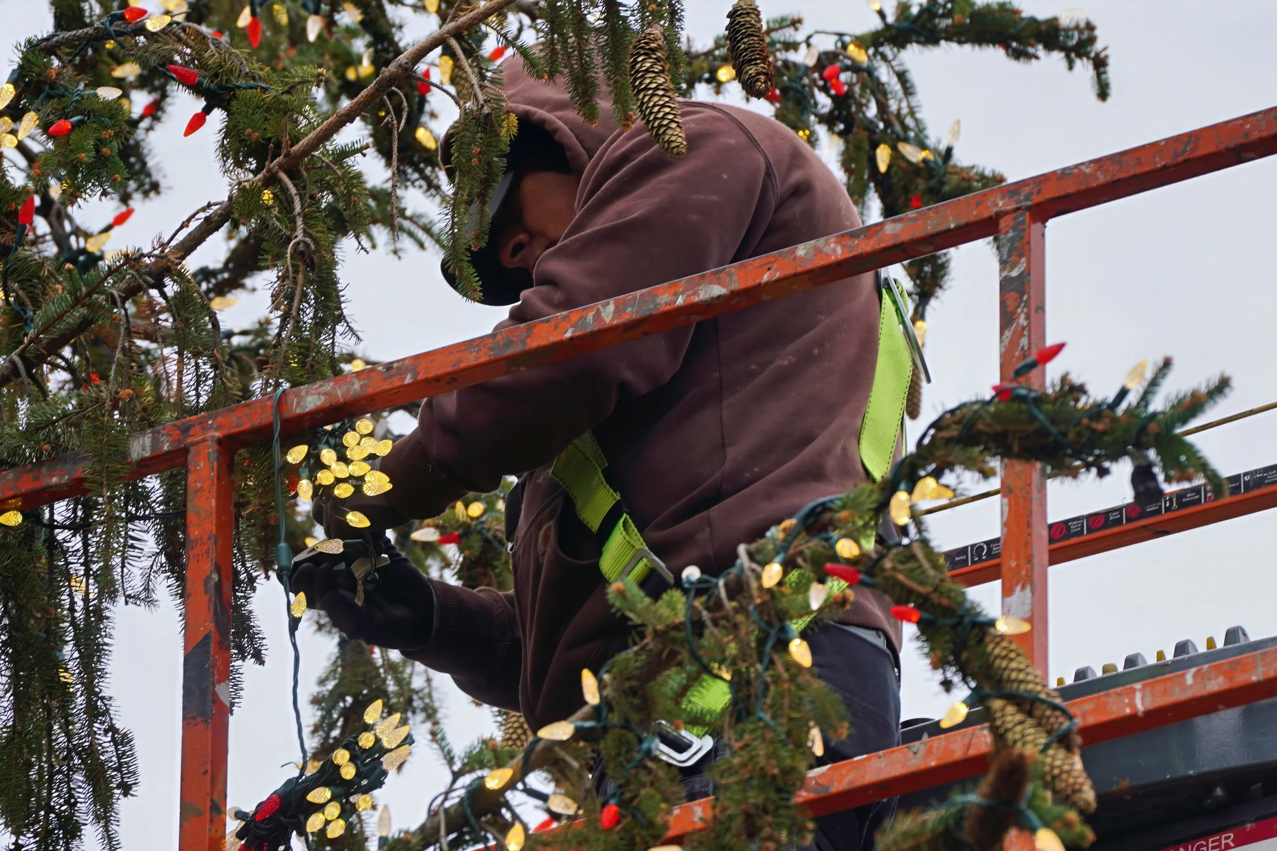 Each year, the crew examines every bulb, stretches out coils of wire, and plans the layout so the tree looks balanced from all sides. The tree's height demands specialized equipment, and the winds sweeping in from the river require every connection to be triple-checked in anticipation of the big night. In Conner’s words, their work is both “difficult” and “potentially monotonous,” yet its impact is far from that.
