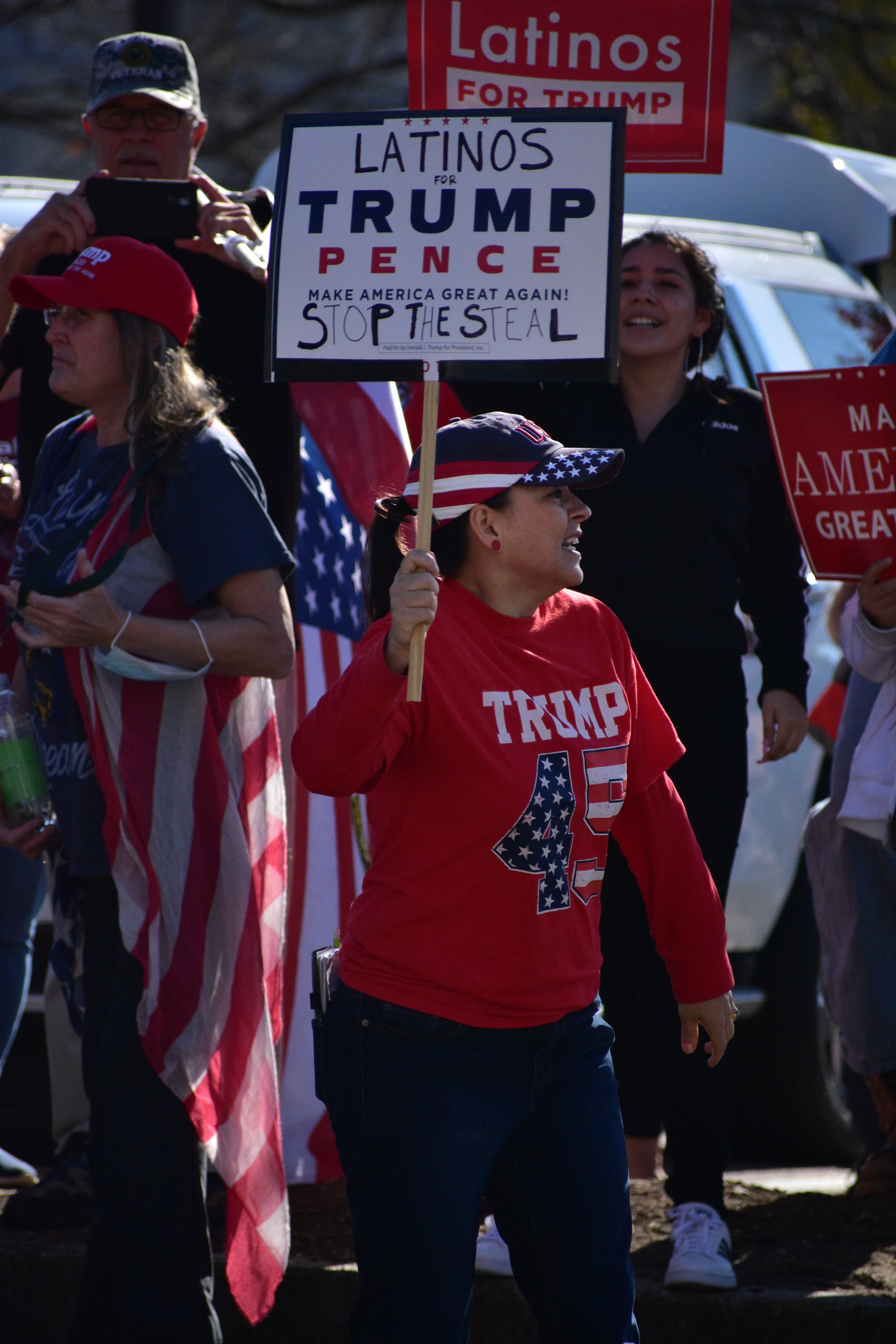 Latina Trump supporters at a 2020 Proud Boys rally in Raleigh. Photo by Anthony Crider on Flickr.