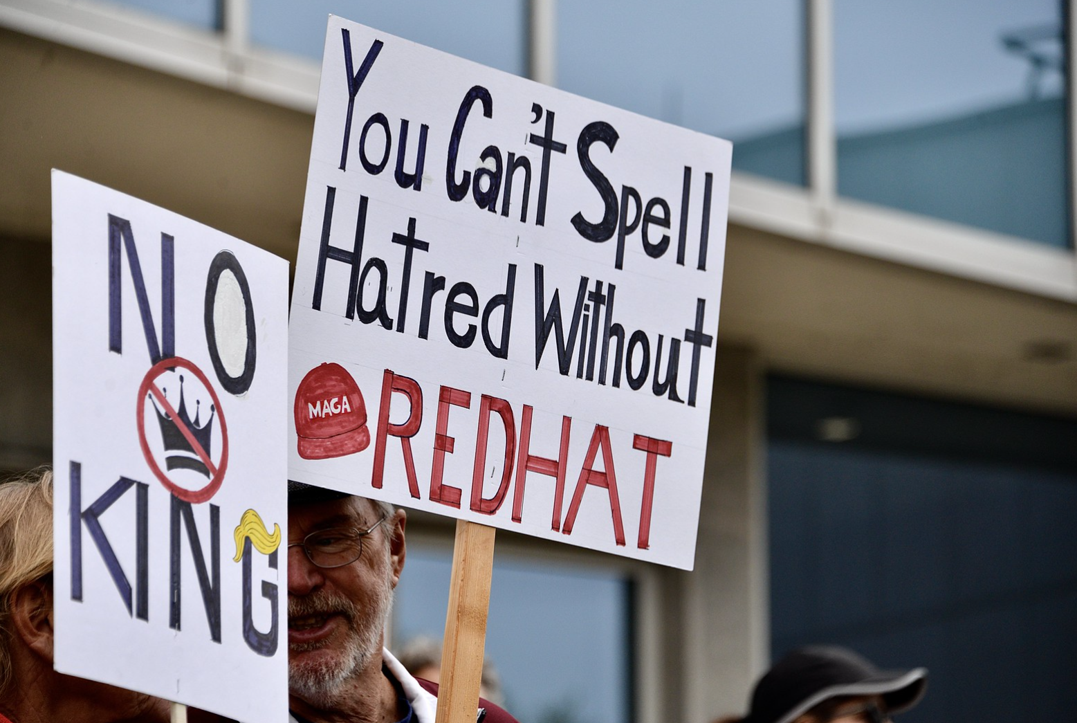 "No Kings" rally/protest on Division St. by the St. Cloud Public Library, St. Cloud MN.